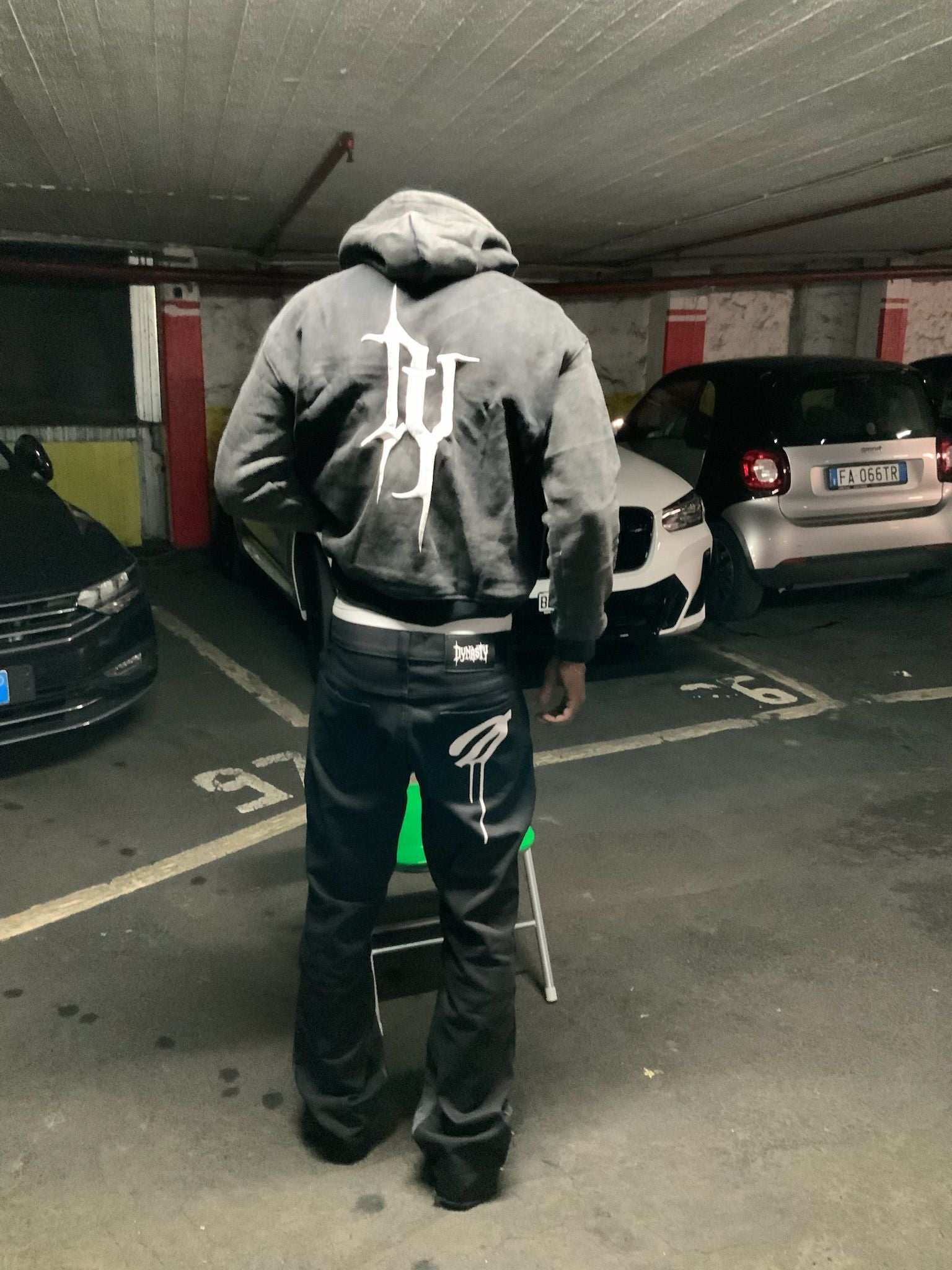 Sul taschino frontale, una stampa distintiva DYNASTY aggiunge identità e riconoscibilità, mentre sul retro la “D” che sgocciola diventa firma visiva — un richiamo al DNA del brand e alla cultura street da cui nasce.