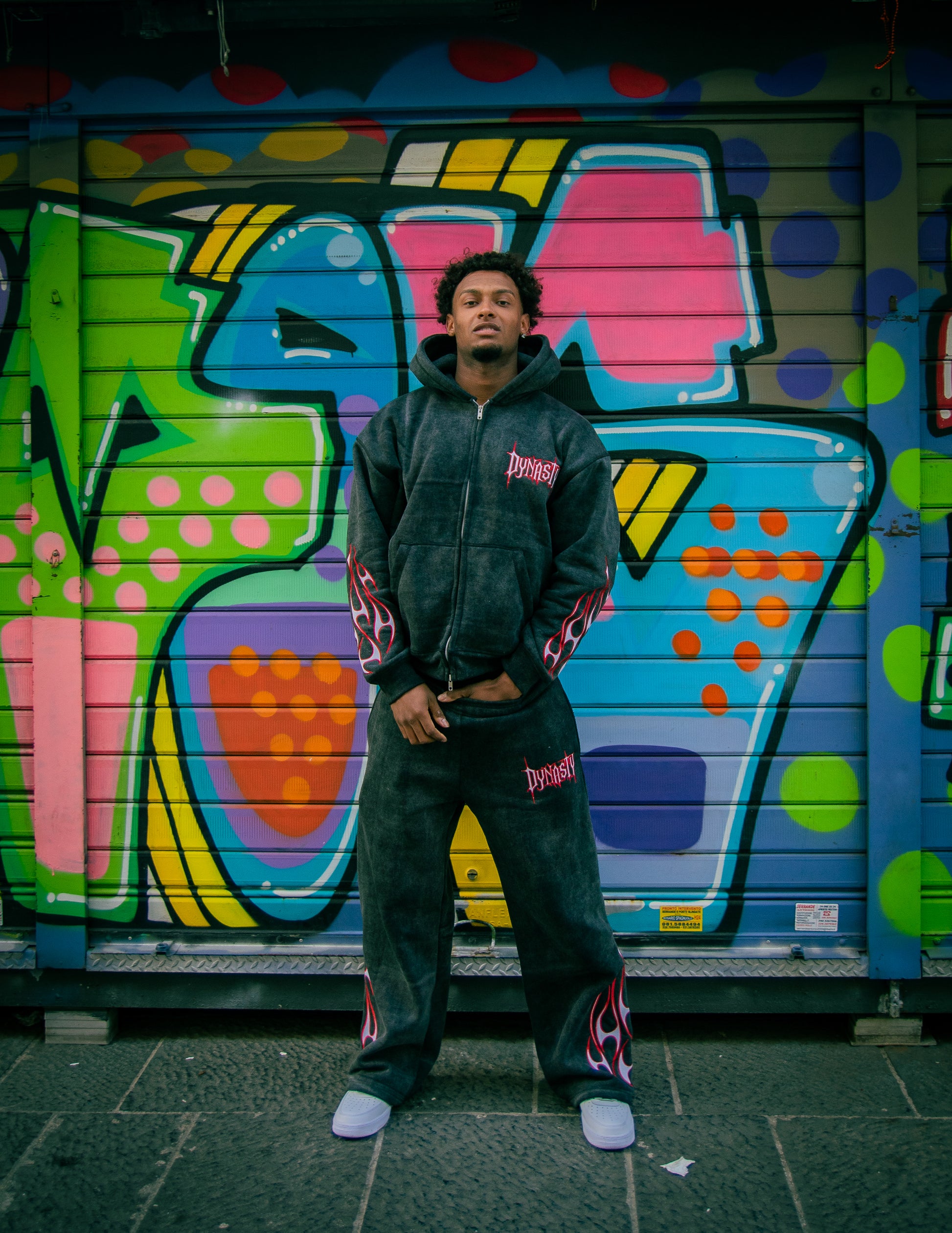 Tribal Flame Zip Hoodie Washed 550 GSM – Boxy Fit