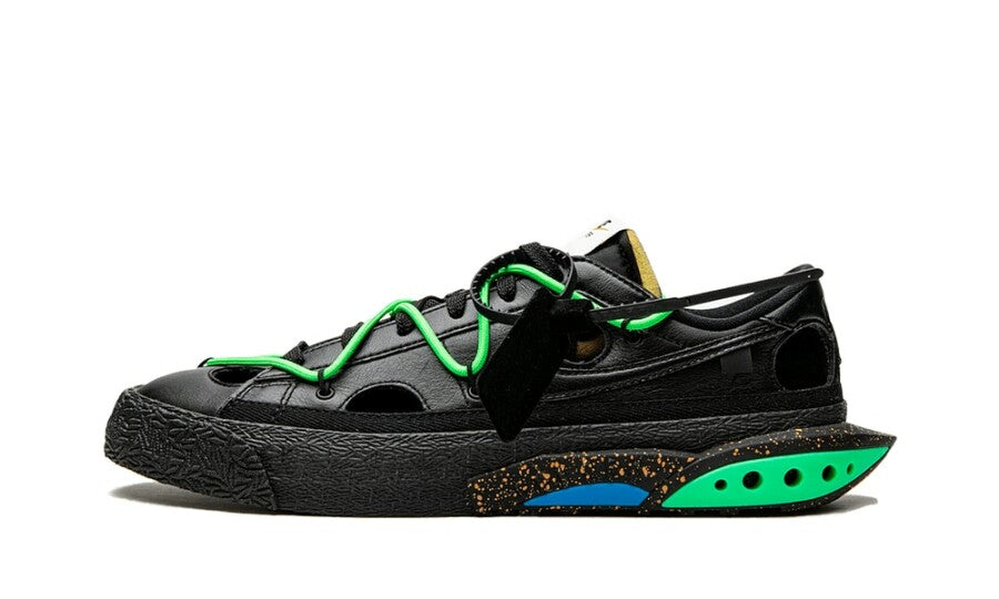 La Nike Blazer Low 77 Off-White Electro Green offre un look sportivo diversificato con elementi di design distintivi. Ispirata al basket, allo skateboarding e al trail running, questa sneaker presenta un esclusivo pezzo di tallone in TPU Air Terra Humara abbinato a una classica suola vulcanizzata. La tomaia in pelle nera è arricchita da fori perforati, richiamando il design dell’Air Jordan 5 Off-White. Dettagli notevoli includono un sistema di lacci sovrapposti in colore Electro Green, una linguetta in schiuma esposta, un’etichetta con zip tie e un tab con il logo Swoosh, rispecchiando lo stile inconfondibile di Off-White. Questa combinazione di caratteristiche crea una sneaker che si distingue, fondendo design moderno con richiami a varie influenze sportive